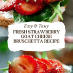 This delightful Strawberry Goat Cheese Bruschetta is a perfect appetizer combining the chewy texture of toasted baguette slices with creamy goat cheese, fresh arugula, juicy marinated strawberries, and aromatic basil. The strawberries are enhanced with a balsamic vinegar and honey marinade, adding a sweet and tangy flavor that complements the peppery arugula and earthy basil. Ready in just over 10 minutes, it’s an elegant, fresh, and easy-to-make starter for any occasion.