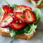 This delightful Strawberry Goat Cheese Bruschetta is a perfect appetizer combining the chewy texture of toasted baguette slices with creamy goat cheese, fresh arugula, juicy marinated strawberries, and aromatic basil. The strawberries are enhanced with a balsamic vinegar and honey marinade, adding a sweet and tangy flavor that complements the peppery arugula and earthy basil. Ready in just over 10 minutes, it’s an elegant, fresh, and easy-to-make starter for any occasion.