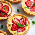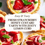 These Strawberry Honey Custard Tarts with Lemon Curd combine a flaky homemade crust with a smooth, sweet custard and fresh strawberries. Finished with a tangy lemon curd drizzle, they make a perfect elegant dessert for any occasion.