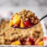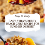 Keywords: strawberry peach crisp, fruit crisp, baked dessert, summer dessert, easy crisp recipe, oat topping dessert