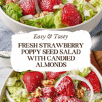 A refreshing Strawberry Poppy Seed Salad featuring crisp romaine, sweet fresh strawberries, and crunchy candied almonds, all tossed in a creamy poppy seed dressing. Perfect for a light, flavorful side or a vibrant addition to any meal.