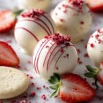 Strawberry Shortcake Truffles are a delightful treat that combines the crunch of Golden Oreos with creamy cream cheese and the sweet, fruity flavor of strawberry shortcake crumbs. Coated in smooth white chocolate and drizzled with red candy melts, these bite-sized sweets are perfect for parties or a special dessert.