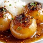 This Onion Boil recipe features tender whole or halved onions simmered in a flavorful broth made with soy sauce, apple cider vinegar, brown sugar, garlic, ginger, and spices. The onions absorb the savory and slightly tangy liquid, creating a deliciously soft and aromatic side dish that pairs well with a variety of meals.