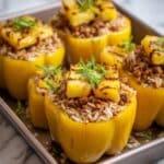 - Serve and Enjoy: Remove stuffed peppers from the oven and let cool slightly before serving. Garnish with extra pineapple chunks or chopped green onions for a fresh touch.
