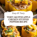Teriyaki Pineapple Chicken and Rice Stuffed Peppers combine sweet and savory flavors in a colorful, nutritious meal. Packed with tender chicken, juicy pineapple, and hearty rice, these stuffed peppers are perfect for a satisfying weeknight dinner or meal prep. They offer a delicious balance of protein, vegetables, and carbs in one easy dish.