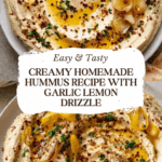 Keywords: homemade hummus, chickpeas, tahini, Middle Eastern dip, garlic lemon hummus, healthy dip, vegan appetizer