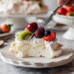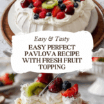 This Perfect Pavlova Recipe produces a light, crisp meringue base topped with luscious whipped cream and fresh mixed fruit. With a crisp exterior and marshmallow-like interior, this classic dessert is elegantly simple and ideal for any special occasion or summer treat.