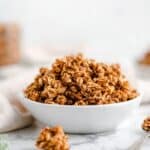 • Brown rice cereal is key for cluster crunch; regular rice cereal or crushed rice pocket cereal can be alternatives.