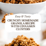 This healthy homemade granola is lightly sweetened with a cozy cinnamon flavor and packed with big crunchy clusters. It’s a versatile recipe perfect for breakfast with milk or yogurt, or as a wholesome snack on its own. Customize it easily with your favorite mix-ins once it’s cooled.