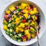 Keywords: Mango salad, tropical salad, cucumber salad, no-cook recipe, vegan salad, gluten free, summer salad, fresh salad