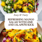 This vibrant Mango Salad combines sweet, juicy mangoes with crisp cucumbers and a tangy lime dressing. A hint of jalapeño adds a gentle heat, making it refreshing and satisfying. Perfect as a light summer meal or a bright side dish, this salad is easy to prepare and full of fresh flavors.