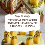 This Tropical Pistachio Pineapple Cake is a delightful blend of sweet pineapple, crunchy pistachios, and creamy pistachio pudding topping. Light, moist, and bursting with tropical flavors, it’s perfect for gatherings or a special treat at home.