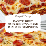 This Turkey Pizza Bake is a delicious and easy twist on classic pizza, layered with flavorful turkey Italian sausage, savory sauce, and plenty of melted cheese. Ready in just 30 minutes, it’s perfect for a comforting weeknight meal that the whole family will love.