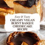 Keywords: Vegan cheesecake, Burnt Basque cheesecake, San Sebastian cheesecake, dairy-free dessert, vegan dessert, plant-based cheesecake, coconut cream cheesecake, silken tofu cheesecake