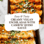 Keywords: vegan enchiladas, cashew queso, plant-based Mexican recipe, dairy-free queso, roasted sweet potatoes, black beans enchiladas, gluten free enchiladas, healthy vegan dinner