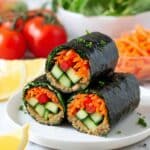 These Vegan Sushi Wraps are a fresh and healthy plant-based alternative to traditional sushi rolls, made with nutrient-rich sunflower seed cheese, fresh vegetables, and wrapped in nori and collard leaves for a delicious, gluten-free meal ready in just 20 minutes.