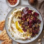 Keywords: whipped feta, roasted beets, pistachios, vegan feta, Mediterranean appetizer, plant-based, healthy snack, flatbread dip