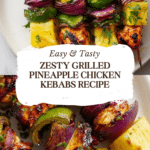 Zesty Grilled Pineapple Chicken Kebabs combine juicy chicken with sweet pineapple and vibrant vegetables, all enhanced by a tangy, flavorful marinade. Perfect for summer cookouts or a quick weeknight dinner, these kebabs are both colorful and delicious.